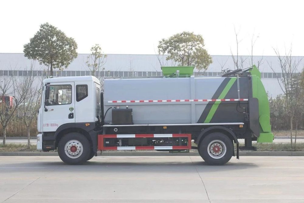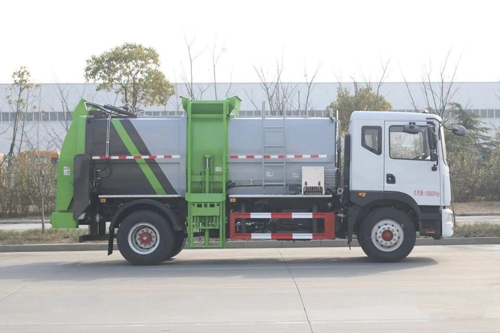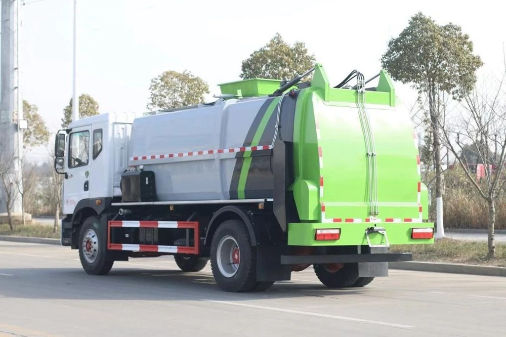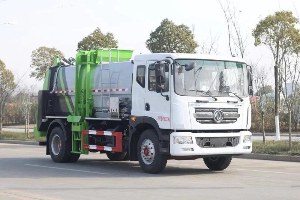 餐廚垃圾車,又稱餐余垃圾車、余廚垃圾車或者泔水車,餐廚垃圾車是垃圾車中的一種,是用于收集和運輸生活垃圾、食品垃圾(泔水)專用車輛。上裝由箱體、后門總成、后門開啟機構、密封鎖緊機構、推板機構、掛桶提升機構及操縱機構等組成。有裝、卸垃圾自動化程度高、工作可靠、密封性好、裝載容積大、操作簡便、作業過程密閉,無污水泄露和異味的散發,環保性好等特點。餐廚垃圾車不僅優化了居民居住的環境衛生,減少了空氣中的餐廚垃圾臭味,減少孳生蟑螂、細菌的可能, 改善了環衛作業環境,減少垃圾的四處分散造成的污染。